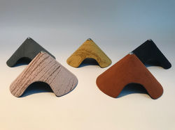 従来は衣料や家具、内装などを中心に使用されていたウルトラスエードを、今回はプロダクト製品への展開を想定して立体形状へ貼り付けしたサンプルを製作。ユニークなフォルムを持つツリー形状に多彩なカラーとパターンを組み合わせた。厚みや伸び率などの多様な設定があるウルトラスエードはプロダクト製品に対してもマッチングが良いことを今回の展示で表現し、カット端末が美しいこの素材だからこそ端面同士の貼り合わせも可能となった。また、レーザーによる柄加工はデジタルデーターを使用しており、1点ものでも加工可能。展示会用に開発したオリジナルカラーを含めた深みのあるカラーバリエーションも本展示の魅力の一つとなっている。